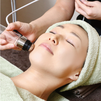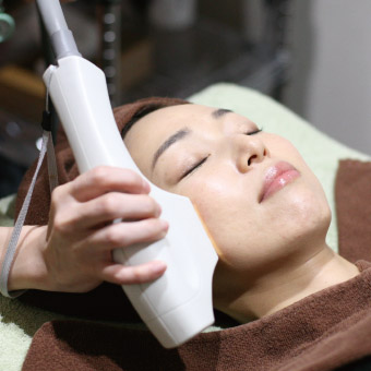 イオン化した分子を広範囲に導入できる「イオン導入」と、有効成分を肌深部へ効率的に浸透させ、深部温熱効果で血液とリンパの流れを活性化し新陳代謝を促進する「超音波導入」の同時施術を可能にした治療です。レーザー・光治療やピーリングと併用することでさらに高い効果が期待できます。